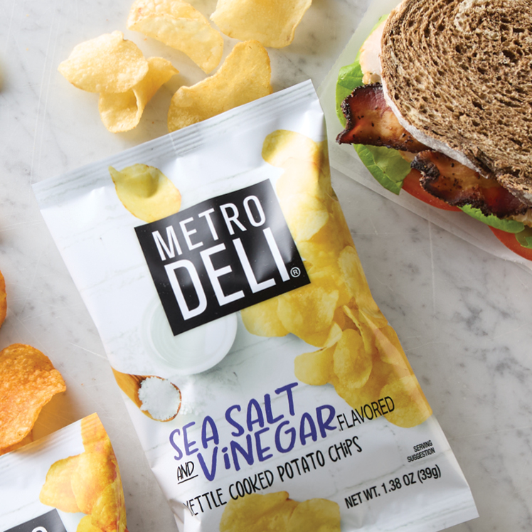 Our Metro Deli® Kettle Cooked Potato Chips have the same great taste, now with a refreshed design customers will eat up. Thickly sliced potatoes are kettle-cooked in batches for a non-uniform shape, bold potato flavor and a thicker, sturdier texture. Then they’re seasoned for that iconic kettle chip flavor. Ready as an add-on, upsell or to serve as a hearty side in its new packaging.